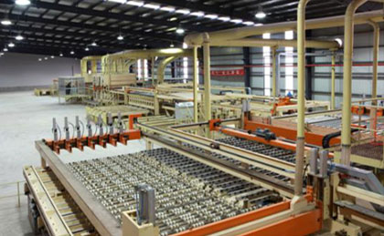 生产线生产能力:    (500m -1200) m3/日(年生产天数:300天、每天班数:3班、每班有效工作时间:7.5小时、以生产4X 8’幅面 厚度 12mm规格成品板计算产能)